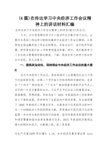 强调贯彻会议精神,推动高质量发展,坚持稳中求进工作总基调,确保经济稳定增长!公文包网友为您分享整理的“(4篇)在传达学习中央经济工作会议精神上的讲话材料汇编”范文资料,以供您参考学习之用,希望喜欢。