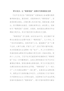 枫桥经验作为社会治理的典范,需在新时代背景下不断创新与发展,紧密结合实际,深化内涵,扩大外延,持续为社会和谐稳定贡献力量。以下由网友整理分享的“研讨发言让枫桥经验在新时代持续焕发光彩”相关材料,便您学习参考,喜欢就分享给朋友吧!
