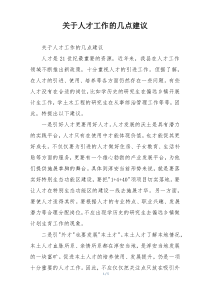 加强人才培养引进,优化人才发展环境,完善激励机制,构建科学评价体系。下面是小编为您整理的关于人才工作的几点建议范例,仅供参考,希望对您有所帮助。