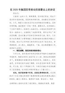 强调目标明确,团结奋进,确保完成全年任务,提升核心竞争力,共创辉煌未来,如何实现?下面是小编为您整理的(整理)在2025年集团四季度动员部署会上的讲话范例,仅供参考,希望对您有所帮助。