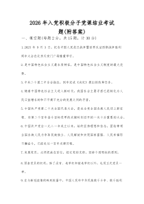 涵盖党章党史党建等内容,考察理论知识与实践能力结合,全面检验入党积极分子综合素质!以下由网友整理分享的“2026年入党积极分子结业考试测试题库(材料)”相关材料,便您学习参考,喜欢就分享给朋友吧!