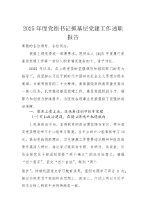 党组织书记围绕基层党建重点任务,强化责任落实,提升组织力,推动党建工作与业务深度融合,成效如何?公文包网友为您分享整理的“2025年度党组书记抓基层党建工作述职报告(材料)”范文资料,以供您参考学习之用,希望喜欢。