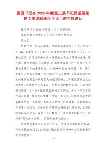 会议强调加强基层党建,推动工作创新,提升党组织战斗力,促进社区和谐发展,如何更好落实?以下是阿拉网友分享的“区委书记在2025年度党工委书记抓基层党建工作述职评议会议上的主持讲话”,供您学习参考,希望有所用途!