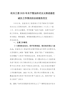 机关工委通过精简会议文件、优化考核机制、强化监督问责等措施,有效减轻基层负担,提升了工作效率。以下由网友整理分享的机关工委2025年关于整治形式主义推进基层减负工作情况的总结报告范文(参考)相关文档,供您学习参考,喜欢就分享吧!