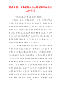 会议强调加强作风建设,提升工作效率,确保各项任务落实到位。以下是小编为您整理分享的“区委常委、常务副区长在全区领导干部会议上的讲话”相关内容,供您学习参考!