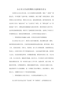 办公室主任在试用期间,展现了卓越的管理能力和团队协作精神,有效提升了工作效率,得到了同事们的广泛认可,是否符合转正要求?下面是网友整理编辑的办公室主任试用期转正述职报告范文相关范文,供大家参考学习,喜欢就下载支持!