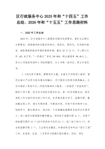 总结过往经验,提升服务效能,创新工作模式,强化队伍建设,未来如何进一步优化政务服务?以下由网友整理分享的区行政服务中心2025年和“十四五”工作总结、2026年和“十五五”工作思路材料【整理】相关文档,供您学习参考,喜欢就分享吧!