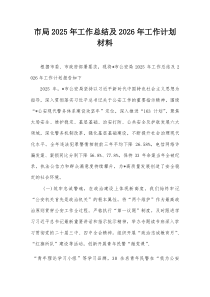 市局总结过往成绩,规划未来发展重点,明确目标与任务,持续推动改革创新,工作如何更上一层楼?下面是小编为您整理的市局2025年工作总结及2026年工作计划材料【整理】范例,仅供参考,希望对您有所帮助。