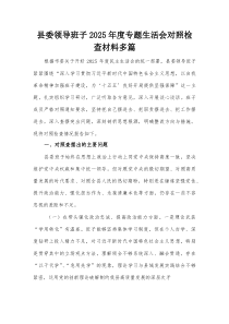 县委领导班子专题生活会对照检查材料围绕政治建设、思想建设、组织建设等方面展开,深入查摆问题,剖析原因,提出整改措施,促进班子整体功能提升。下面网友分享多篇相关内容供您参考学习,希望有您喜欢的。