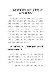 强调安全生产重要性,部署第四季度安全工作重点,确保全县安全形势稳定向好!以下是阿拉网友分享的“县第四季度安委会(扩大)会暨安全生产工作会议上的讲话(材料)”,供您学习参考,希望有所用途!