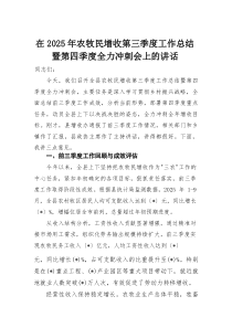 会议总结了第三季度农牧民增收成果,部署第四季度冲刺任务,强调政策落实与创新措施,能否实现全年目标?以下由公文包网友为您分享的范文资料,供您参考学习之用。