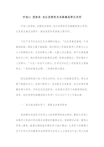 坚持初心,勇担使命,党员应发挥先锋模范作用,引领群众共同奋斗,为实现伟大目标贡献力量。下面是网友整理分享的守初心担使命充分发挥党员先锋模范带头作用相关资料,供大家学习参考,喜欢就分享吧!