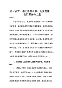 强化思想引领,提升党建宣传效能,凝聚共识,推动工作深入发展。下面是小编为您整理的研讨发言:强化思想引领,为党的建设汇聚宣传力量范例,仅供参考,希望对您有所帮助。