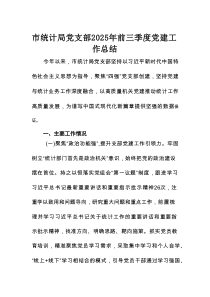 市统计局党支部持续强化理论学习,深化作风建设,推进党建与业务深度融合,成效显著!以下由网友整理分享的市统计局党支部2025年前三季度党建工作总结相关文档,供您学习参考,喜欢就分享吧!