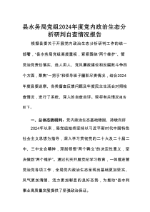 县水务局党组深入分析党内政治生态,查摆问题,提出整改措施,持续优化政治环境。以下由网友整理分享的“县水务局党组2024年度党内政治生态分析研判自查情况报告”相关材料,便您学习参考,喜欢就分享给朋友吧!