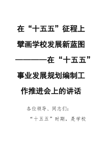 面向未来,明确目标,科学规划,凝聚共识,推动学校高质量发展,共创辉煌!下面是网友整理分享的在“十五五”征程上擘画学校发展新蓝图——在“十五五”事业发展规划编制工作推进会上的讲话(参考)相关资料,供大家学习参考,喜欢就分享吧!