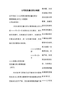公司党员量化积分制度通过设定具体指标评价党员表现,激励作用明显,促进党建工作开展,如何进一步优化?以下由网友整理分享的公司党员量化积分制度相关文档,供您学习参考,喜欢就分享吧!