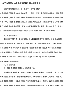 报告指出XX区行业协会商会面临挑战与机遇并存局面,需加强内部管理,提升服务能力,如何实现更高质量发展?以下由公文包网友为您分享的范文资料,供您参考学习之用。