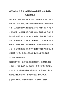 XX市分公司人力资源部优化组织结构,强化人才培养,提升员工满意度,激发团队活力!公文包网友为您分享整理的“关于XX市分公司人力资源部2025年重点工作情况的汇报(精品)”范文资料,以供您参考学习之用,希望喜欢。