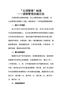 五项管理制度中的读物管理旨在规范校园阅读材料选择与使用流程,确保内容健康适宜,促进学生全面发展。以下是阿拉网友分享的““五项管理”制度-读物管理实施办法”,供您学习参考,希望有所用途!