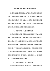 《反有组织犯罪法》宣传活动通过多种渠道展开,提高了公众对该法律的认识和理解,增强了法治意识,效果显著,未来如何持续深化?下面是小编为您整理的《反有组织犯罪法》宣传工作总结范例,仅供参考,希望对您有所帮助。
