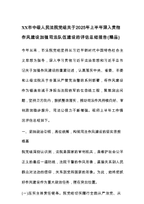 报告总结了法院党组在作风建设与司法队伍建设方面取得的成绩和经验,未来如何进一步提升?下面是小编为您整理的XX市中级人民法院党组关于2025年上半年深入贯彻作风建设加强司法队伍建设的评估总结报告(精品)范例,仅供参考,希望对您有所帮助。