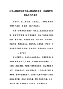 为进一步提升行政争议解决效率,促进依法行政与公正司法,加强沟通协作,共建和谐社会!以下由网友整理分享的XX市人民政府 XX市中级人民法院关于进一步加强府院联动工作的意见相关文档,供您学习参考,喜欢就分享吧!