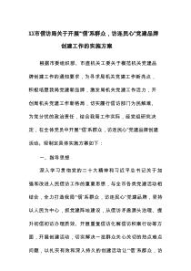 信访局通过创建“信”系群众访连民心党建品牌,强化服务意识,提升工作效能,密切联系群众,促进社会和谐。以下由网友整理分享的XX市信访局关于开展“‘信’系群众,访连民心”党建品牌创建工作的实施方案相关文档,供您学习参考,喜欢就分享吧!