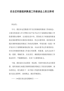 会议旨在总结村级组织换届工作经验,部署下一步工作重点,确保换届过程平稳有序。下面是小编为您整理的在全区村级组织换届工作座谈会上的主持词范例,仅供参考,希望对您有所帮助。