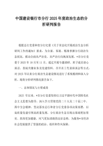 建设银行市分行政治生态总体良好 组织结构优化 风险控制加强 员工满意度提升 如何进一步巩固成果?以下由网友整理分享的“中国建设银行市分行2025年度政治生态的分析研判报告”相关材料,便您学习参考,喜欢就分享给朋友吧!