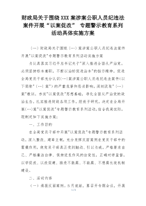 财政局针对XXX案涉案公职人员违纪违法情况,开展“以案促改”专题警示教育系列活动,通过案例剖析、反思讨论、整改落实等环节,强化纪律意识,提升廉洁自律水平。下面是网友整理编辑的财政局关于围绕XXX案涉案公职人员纪违法案件开展“以案促改” 专题警示教育系列活动具体实施方案相关范文,供大家参考学习,喜欢就下载支持!