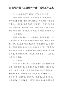 财政局推进“三查两转一评”活动,旨在强化财务管理,提升工作效率,确保资金安全,促进廉洁自律。以下由公文包网友为您分享的范文资料,供您参考学习之用。