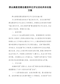 通过问卷调查、现场评议等方式收集群众意见,对各单位进行综合评价,评选出满意度最佳与最差单位。下面是网友整理分享的群众满意度最佳最差单位评议活动具体实施方案相关资料,供大家学习参考,喜欢就分享吧!