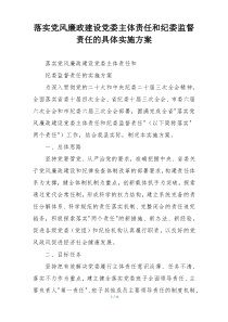 明确党委领导责任和纪委监督职责,建立健全制度机制,强化考核问责,确保党风廉政建设有效推进。以下由网友整理分享的“落实党风廉政建设党委主体责任和纪委监督责任的具体实施方案”相关材料,便您学习参考,喜欢就分享给朋友吧!