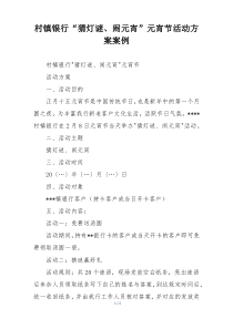村镇银行举办元宵节活动通过猜灯谜形式吸引客户参与增加互动性促进文化交流提升品牌形象。以下是阿拉网友分享的“村镇银行“猜灯谜、闹元宵”元宵节活动方案案例”,供您学习参考,希望有所用途!