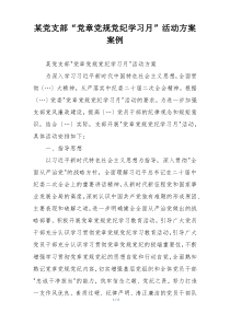 党支部组织系列学习活动 包括专题讲座 小组讨论 知识竞赛等 旨在提升党员理论水平和纪律意识 好振奋人心!以下是小编为您整理分享的“某党支部“党章党规党纪学习月”活动方案案例”相关内容,供您学习参考!