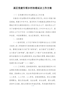 以党建为引领,推进乡村治理试点,强化组织建设,提升服务能力,促进乡风文明,具体措施如何实施?下面是小编为您整理的某区党建引领乡村治理试点工作方案范例,仅供参考,希望对您有所帮助。