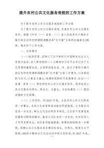 加强农村公共文化设施建设,丰富服务内容,创新服务方式,提高服务水平,满足群众文化需求。以下是小编为您整理分享的“提升农村公共文化服务效能的工作方案”相关内容,供您学习参考!