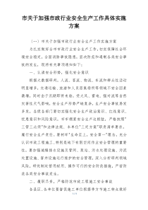 市通过强化责任落实、完善制度建设、加大监督检查力度、提升应急处置能力,确保市政行业安全生产形势稳定。公文包网友为您分享整理的“市关于加强市政行业安全生产工作具体实施方案”范文资料,以供您参考学习之用,希望喜欢。