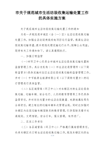 方案明确城市生活垃圾收集、运输、处置标准,强化监管,提升设施,推动分类减量,促进资源化利用。下面是小编为您整理的市关于规范城市生活坊圾收集运输处置工作的具体实施方案范例,仅供参考,希望对您有所帮助。