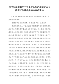 市卫生健康委发布通知,部署安全生产和消防安全大检查工作,要求各单位严格落实,确保无安全隐患。下面是网友整理编辑的市卫生健康委关于开展安全生产消防安全大检查工作具体实施方案的通知相关范文,供大家参考学习,喜欢就下载支持!