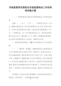 市场监管局通过完善法规、强化技术支撑、优化服务流程、加强队伍建设,全面提升监管效能和执法水平,如何进一步深化这些措施?以下由网友整理分享的“市场监管局全面优化市场监管执法工作的具体实施方案”相关材料,便您学习参考,喜欢就分享给朋友吧!