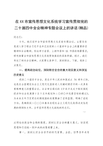 会议强调深入学习宣传贯彻党的二十届四中全会精神,加强思想文化建设,推动精神文明创建,提升城市文化软实力。以下是小编为您整理分享的“(资料)在XX市宣传思想文化系统学习宣传贯彻党的二十届四中全会精神专题会议上的讲话”相关内容,供您学习参考!