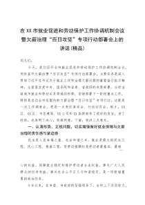 会议强调加强就业促进与劳动保护,部署欠薪治理专项行动,确保劳动者权益,工作如何有效推进?下面是小编为您整理的(资料)在XX市就业促进和劳动保护工作协调机制会议暨欠薪治理“百日攻坚”专项行动部署会上的讲话范例,仅供参考,希望对您有所帮助。