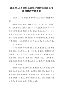 县委针对XX乡党政主要领导政治谈话中指出问题,制定整改方案,明确整改措施、责任人及完成时限,确保落实到位!下面网友分享多篇相关内容供您参考学习,希望有您喜欢的。
