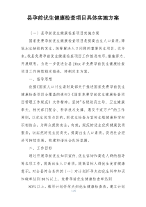 县孕前优生健康检查项目旨在通过提供全面的健康检查与咨询服务,提高出生人口素质,具体措施包括哪些?以下由网友整理分享的“县孕前优生健康检查项目具体实施方案”相关材料,便您学习参考,喜欢就分享给朋友吧!