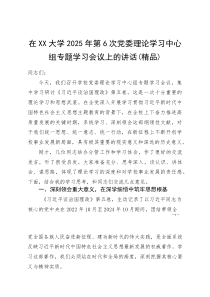 会议强调深入学习理论知识,结合实际工作,推动学校高质量发展。以下由网友整理分享的“(资料)在XX大学2025年第6次党委理论学习中心组专题学习会议上的讲话”相关材料,便您学习参考,喜欢就分享给朋友吧!
