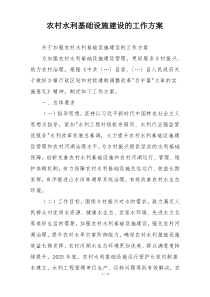 加强农村水利基础设施建设,提升灌溉排水能力,保障农业生产用水需求,促进农业可持续发展。下面是小编为您整理的农村水利基础设施建设的工作方案范例,仅供参考,希望对您有所帮助。