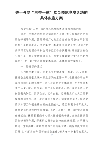 组织党员参与志愿服务、技术创新、业绩比拼等活动,激励党员发挥先锋模范作用,如何确保活动有效推进?下面是网友整理分享的关于开展“三带一献”党员领跑竞赛活动的具体实施方案相关资料,供大家学习参考,喜欢就分享吧!