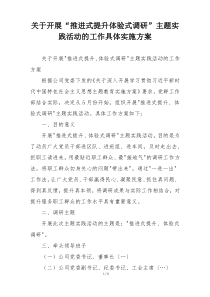 明确调研目标 制定详细计划 组织专业团队 实施现场考察 收集分析数据 撰写报告 提出改进建议。下面是网友整理编辑的关于开展“推进式提升体验式调研”主题实践活动的工作具体实施方案相关范文,供大家参考学习,喜欢就下载支持!
